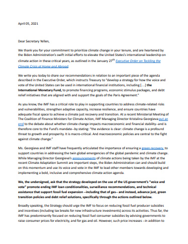 Group Letter to US Treasury on IMF and climate